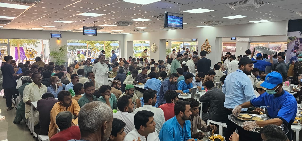 With a seating capacity of 350 plus people, Bahria Dastarkhwan Gambat is the largest Dastarkhwan in Sindh and will serve thousands of people daily through free service in multiple shifts at lunch and dinner time.
