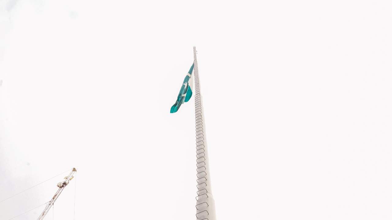 Islamabad: Bahria Town hoisted the Pakistani tallest national flag at Bahria Garden City Islamabad. The national flag was being hoisted on a 160 feet tall pole, and the size of the flag was 25 x 40 feet.