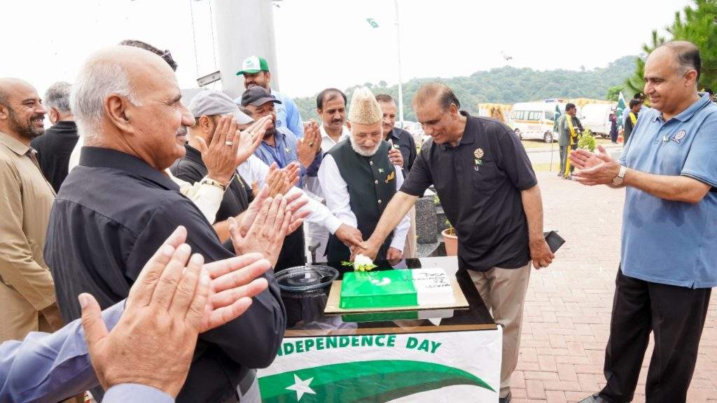 Cmdr M. Ilyas (Retd) VCE Bahria Town & Maj Gen Javed Iqbal (Retd) ED Bahria Town was the chief guest at the flag hoisting ceremony. The ceremony got underway with the national anthem, followed by the flag hoisting ceremony and cake cutting. The chief guest raised the flag and raised his hands for the exclusive prayer for the Shuhada –e-Pakistan, peace, and prosperity of the country.
