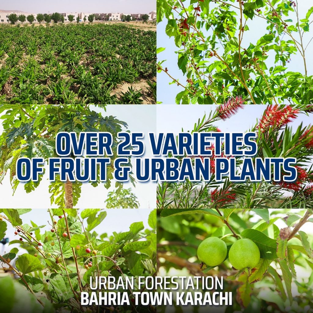 The green revolution in Bahria Town features a diverse array of orchard and urban plants, creating a harmonious blend of natural beauty and urban development. Urban plants such as Astonia, Tale, Arjun, Bottlebrush, Tacoma, Sukh Chain, Kachnar, Neem, Jungle Jalebi, Ber, Shatoot, and Bakain contribute to the town’s lush and varied greenery.