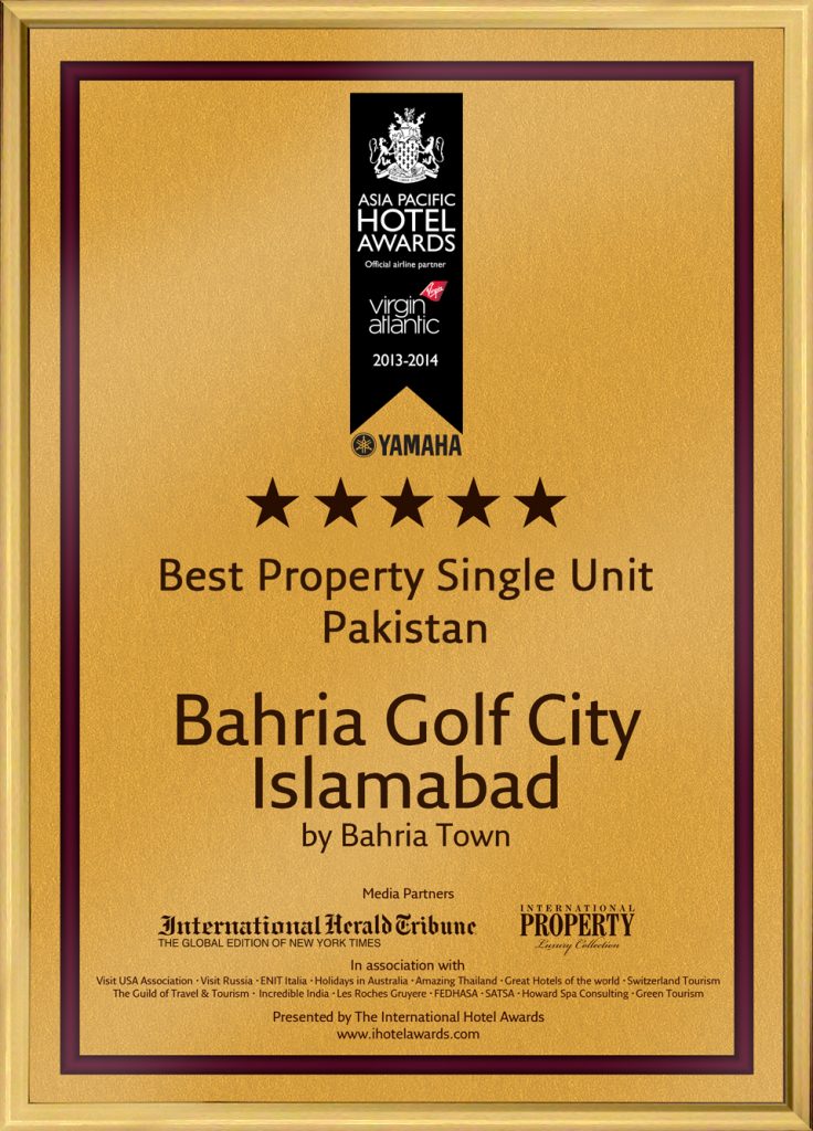 ISLAMABAD (PR): Bahria Town is one of the world’s largest real estate developers. Second year in a row, Bahria Town’s futuristic portfolio has once again been bestowed with the honor of 5 new accolades by the Asia Pacific International Property Awards 2013-14 held in Kuala Lumpur, Malaysia. Of the five awards won 3 were in the “5-Star” category while 2 were ranked “Highly Commended”. These prestigious awards are recognized as the highest standard of excellence throughout the global industry. Hundreds of finest real estate developers and architects gathered from across 23 countries including; China, Japan, Australia, Hong Kong, Thailand, Malaysia, Philippines, Indonesia, Taiwan, New Zealand, India and many others participated in this event, making it the biggest International property awards regional event in its 19 year history.
