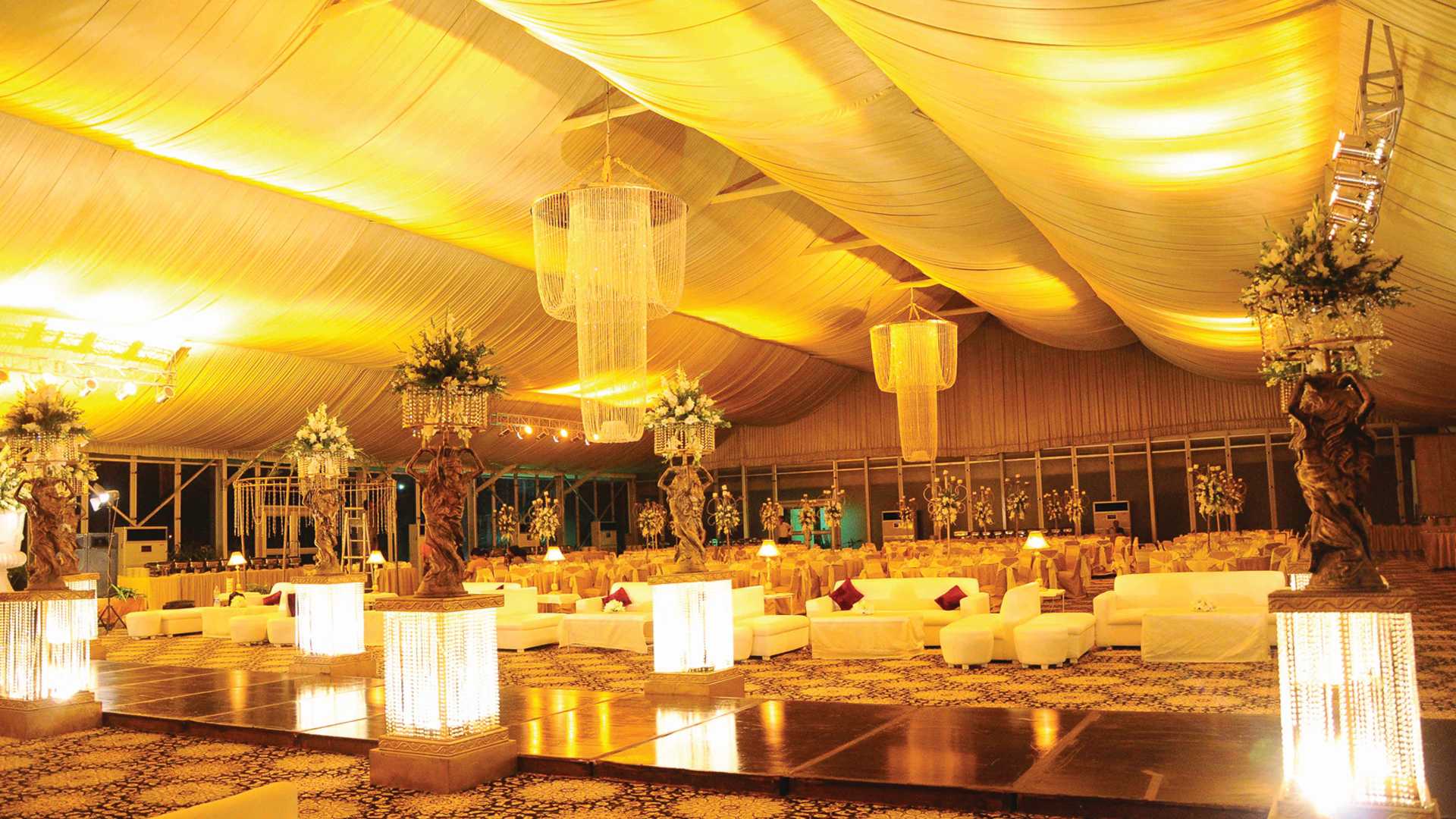 Set amidst acres of golf greens and a part of the Garden City Golf & Country-Club, the Rubaish Marquee & Lawns are a stunning choice for wedding receptions, corporate events and grand celebrations. The Marquee is a high-roof, pillar-less hall that gives a great sense of extravagance and lavishness. It has the capacity to accommodate more than 3,000 guests.